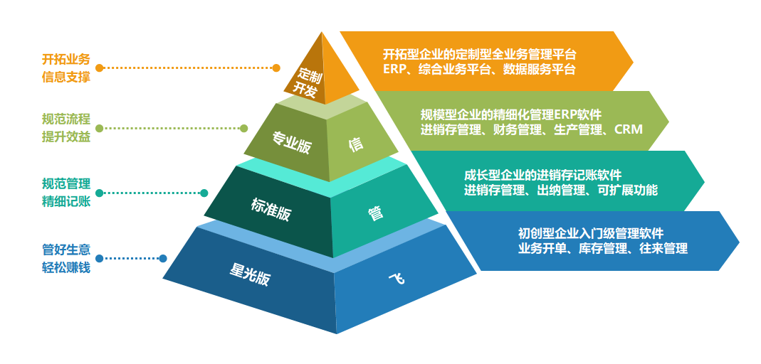 信管飛RMS分為星光版、標準版、專業(yè)版三個版本,包含的功能依次遞增,可適應不同發(fā)展階段和業(yè)務類型的管理需求。企業(yè)可根據(jù)自身業(yè)務管理需要進行購買,并可在后續(xù)根據(jù)業(yè)務管理需求變化升級到更高級的版本,實現(xiàn)數(shù)據(jù)平滑升級和軟件價值最大化!真正一套軟件,適應企業(yè)各個發(fā)展階段業(yè)務需要!