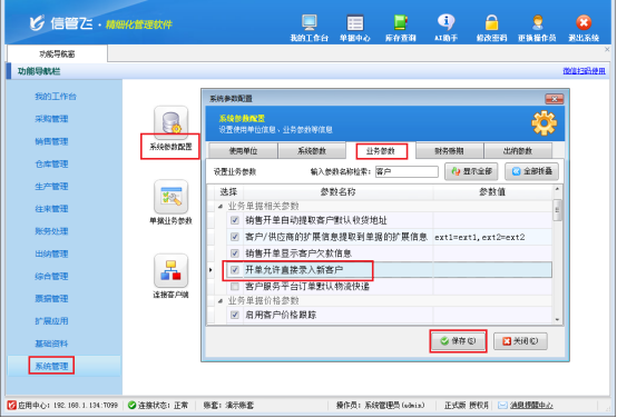 此文章相關(guān)演示視頻:開單界面無法直接錄入新客戶,如何解決? 在如今快節(jié)奏的商業(yè)世界里,高效便捷的業(yè)務(wù)管理軟件是企業(yè)運營的得力助手。信管飛系列軟件憑借其強大的功能,在采購及銷售開單時支持直接錄入新客戶,大大節(jié)省了業(yè)務(wù)處理時間,提升了工作效率,深受眾多企業(yè)用戶的青睞。然而部分用戶在使用信管飛軟件時,碰到了無法新增客戶的棘手情況,這無疑給業(yè)務(wù)推進帶來了阻礙。本篇文章以“信管飛RMS軟件”為例介紹下何輕松解決這一問題,讓你快速恢復(fù)順暢的業(yè)務(wù)開單流程。&nb